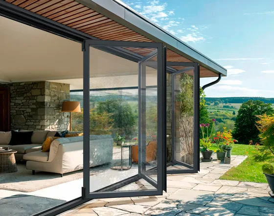 Enjoy year-round comfort with Visofold 1000 aluminium bifold doors. Large glazed panels invite natural light, improve energy efficiency, and create a bright, welcoming space. Their smooth, reliable folding action opens up your Hampshire home to the outdoors with ease.